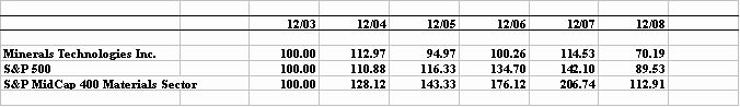 We also have audited, in accordance with the standards of the Public Company Accounting Oversight Board (United States), Mineral Technologies Inc. and subsidiary companies' internal control over financial reporting as of December 31, 2008, based on