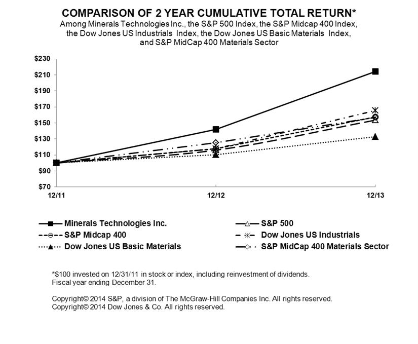 We also have audited, in accordance with the standards of the Public Company Accounting Oversight Board (United States), the consolidated balance sheets of Minerals Technologies Inc. and subsidiary companies as of December 31, 2013 and 2012, and the related consolidated statements of income, comprehensive income, shareholders' equity, and cash flows and related financial statement schedule for each of the years in the three-year period ended December 31, 2013, and our report dated February 21, 2014
