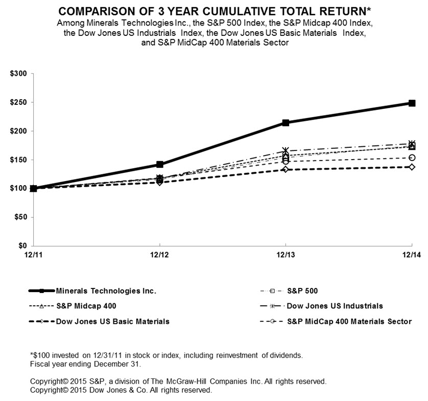 We have audited the accompanying consolidated balance sheets of Minerals Technologies Inc. and subsidiary companies as of December 31, 2014 and 2013, and the related consolidated statements of income, comprehensive income, shareholders’ equity, and cash flows for each of the years in the threeyear period ended December 31, 2014. In connection with our audits of the consolidated financial statements, we also have audited the related financial statement schedule. These consolidated financial statements and financial statement schedule are the responsibility of the Company’s management. Our responsibility is to express an opinion on these consolidated financial statements and financial statement schedule based on our audits.