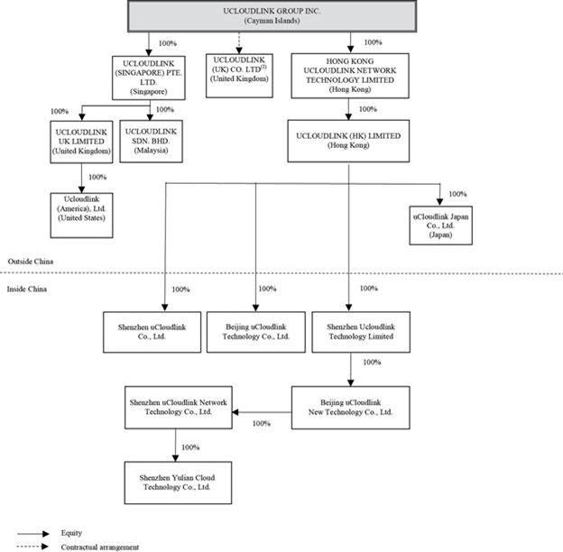 Less than 1 thousand.http://fasb.org/us-gaap/2024#LeaseholdImprovementsMemberRestricted SharesShare optionsRisk-free interest rate is based on the yields of United States Treasury securities with maturities similar to the expected life of the share options in effect at the time of grant.Expected dividend yield is assumed to be 0% as the Company has no history or expectation of paying dividend on its ordinary shares.Expected volatility is assumed based on the historical volatility of the Company’s comparable companies in the period equal to the expected life of each grant.35700021000080000P1MThe Group’s short-term bank borrowings are primarily used for working capital and business development purposes and bear interest rate of 3.00% ~ 3.17% (2023: 3.20% ~ 3.55%) per annum, with a weighted average interest rate of 3.11% (2023: 3.38%) per annum. Certain bank borrowings are guaranteed by certain of our directors, certain legal representative, certain subsidiary and other company as of December 31, 2023 and 2024.0001775898falseFY12200112200100017758982024-01-012024-12-310001775898dei:BusinessContactMember2024-01-012024-12-310001775898ucl:AmericanDepositarySharesMember2024-01-012024-12-310001775898ucl:ClassAOrdinarySharesParValueUS000005PerShareMember2024-01-012024-12-310001775898us-gaap:CommonClassAMember2024-12-310001775898us-gaap:CommonClassBMember2024-12-3100017758982022-01-012022-12-3100017758982023-01-012023-12-310001775898ucl:RevenuesFromServicesMember2022-01-012022-12-310001775898ucl:RevenuesFromServicesMember2023-01-012023-12-310001775898ucl:RevenuesFromServicesMember2024-01-012024-12-310001775898ucl:SaleOfProductsMember2022-01-012022-12-310001775898ucl:SaleOfProductsMember2023-01-012023-12-310001775898ucl:SaleOfProductsMember2024-01-012024-12-310001775898ucl:CostOfServicesMember2022-01-012022-12-310001775898ucl:CostOfServicesMember2023-01-012023-12-310001775898ucl:CostOfServicesMember2024-01-012024-12-310001775898ucl:CostOfProductsSoldMember2022-01-012022-12-310001775898ucl:CostOfProductsSoldMember2023-01-012023-12-310001775898ucl:CostOfProductsSoldMember2024-01-012024-12-3100017758982023-12-3100017758982024-12-310001775898us-gaap:RelatedPartyMember2023-12-310001775898us-gaap:RelatedPartyMember2024-12-310001775898us-gaap:CommonClassAMember2023-12-310001775898us-gaap:CommonClassBMember2023-12-310001775898us-gaap:CommonClassAMemberus-gaap:CommonStockMember2021-12-310001775898us-gaap:CommonClassBMemberus-gaap:CommonStockMember2021-12-310001775898us-gaap:AdditionalPaidInCapitalMember2021-12-310001775898ucl:CumulativeTranslationAdjustmentsMember2021-12-310001775898us-gaap:AccumulatedOtherComprehensiveIncomeMember2021-12-3100017758982021-12-310001775898us-gaap:CommonClassAMemberus-gaap:CommonStockMember2022-01-012022-12-310001775898us-gaap:CommonClassBMemberus-gaap:CommonStockMember2022-01-012022-12-310001775898us-gaap:AdditionalPaidInCapitalMember2022-01-012022-12-310001775898ucl:CumulativeTranslationAdjustmentsMember2022-01-012022-12-310001775898us-gaap:AccumulatedOtherComprehensiveIncomeMember2022-01-012022-12-310001775898us-gaap:CommonClassAMemberus-gaap:CommonStockMember2022-12-310001775898us-gaap:CommonClassBMemberus-gaap:CommonStockMember2022-12-310001775898us-gaap:AdditionalPaidInCapitalMember2022-12-310001775898ucl:CumulativeTranslationAdjustmentsMember2022-12-310001775898us-gaap:AccumulatedOtherComprehensiveIncomeMember2022-12-3100017758982022-12-310001775898us-gaap:CommonClassAMemberus-gaap:CommonStockMember2023-01-012023-12-310001775898us-gaap:CommonClassBMemberus-gaap:CommonStockMember2023-01-012023-12-310001775898us-gaap:AdditionalPaidInCapitalMember2023-01-012023-12-310001775898ucl:CumulativeTranslationAdjustmentsMember2023-01-012023-12-310001775898us-gaap:AccumulatedOtherComprehensiveIncomeMember2023-01-012023-12-310001775898us-gaap:CommonClassAMemberus-gaap:CommonStockMember2023-12-310001775898us-gaap:CommonClassBMemberus-gaap:CommonStockMember2023-12-310001775898us-gaap:AdditionalPaidInCapitalMember2023-12-310001775898ucl:CumulativeTranslationAdjustmentsMember2023-12-310001775898us-gaap:AccumulatedOtherComprehensiveIncomeMember2023-12-310001775898us-gaap:CommonClassAMemberus-gaap:CommonStockMember2024-01-012024-12-310001775898us-gaap:CommonClassBMemberus-gaap:CommonStockMember2024-01-012024-12-310001775898us-gaap:AdditionalPaidInCapitalMember2024-01-012024-12-310001775898ucl:CumulativeTranslationAdjustmentsMember2024-01-012024-12-310001775898us-gaap:AccumulatedOtherComprehensiveIncomeMember2024-01-012024-12-310001775898us-gaap:CommonClassAMemberus-gaap:CommonStockMember2024-12-310001775898us-gaap:CommonClassBMemberus-gaap:CommonStockMember2024-12-310001775898us-gaap:AdditionalPaidInCapitalMember2024-12-310001775898ucl:CumulativeTranslationAdjustmentsMember2024-12-310001775898us-gaap:AccumulatedOtherComprehensiveIncomeMember2024-12-3100017758982024-10-012024-12-3100017758982022-12-312022-12-310001775898ucl:UCLOUDLINKHKLIMITEDMember2024-01-012024-12-310001775898ucl:HONGKONGUCLOUDLINKNETWORKTECHNOLOGYLIMITEDMember2024-01-012024-12-310001775898ucl:ShenzhenUcloudlinkTechnologyLimitedMember2024-01-012024-12-310001775898ucl:ShenzhenUCloudlinkCoLtdMember2024-01-012024-12-310001775898ucl:BeijingUCloudlinkTechnologyCoLtdBeijingUCloudlinkMember2024-01-012024-12-310001775898ucl:UCLOUDLINKSINGAPOREPTELTDMember2024-01-012024-12-310001775898ucl:UCLOUDLINKUKCOLTDMember2024-01-012024-12-310001775898ucl:UcloudlinkAmericaLtdMember2024-01-012024-12-310001775898ucl:UCLOUDLINKSDNBHDMember2024-01-012024-12-310001775898ucl:uCloudlinkJapanCoLtdMember2024-01-012024-12-310001775898ucl:ShenzhenUCloudlinkNetworkTechnologyCoLtdShenzhenUCloudlinkMember2024-01-012024-12-310001775898ucl:BeijingUCloudlinkNewTechnologyCoLtdBeijingTechnologyMember2024-01-012024-12-310001775898ucl:PTUCLOUDLINKTECHNOLOGIESPMAMember2024-01-012024-12-310001775898ucl:UCLOUDLINKUKLIMITEDMember2024-01-012024-12-310001775898ucl:ShenzhenYulianCloudTechnologyCoLtdMember2024-01-012024-12-310001775898srt:MinimumMember2022-01-012022