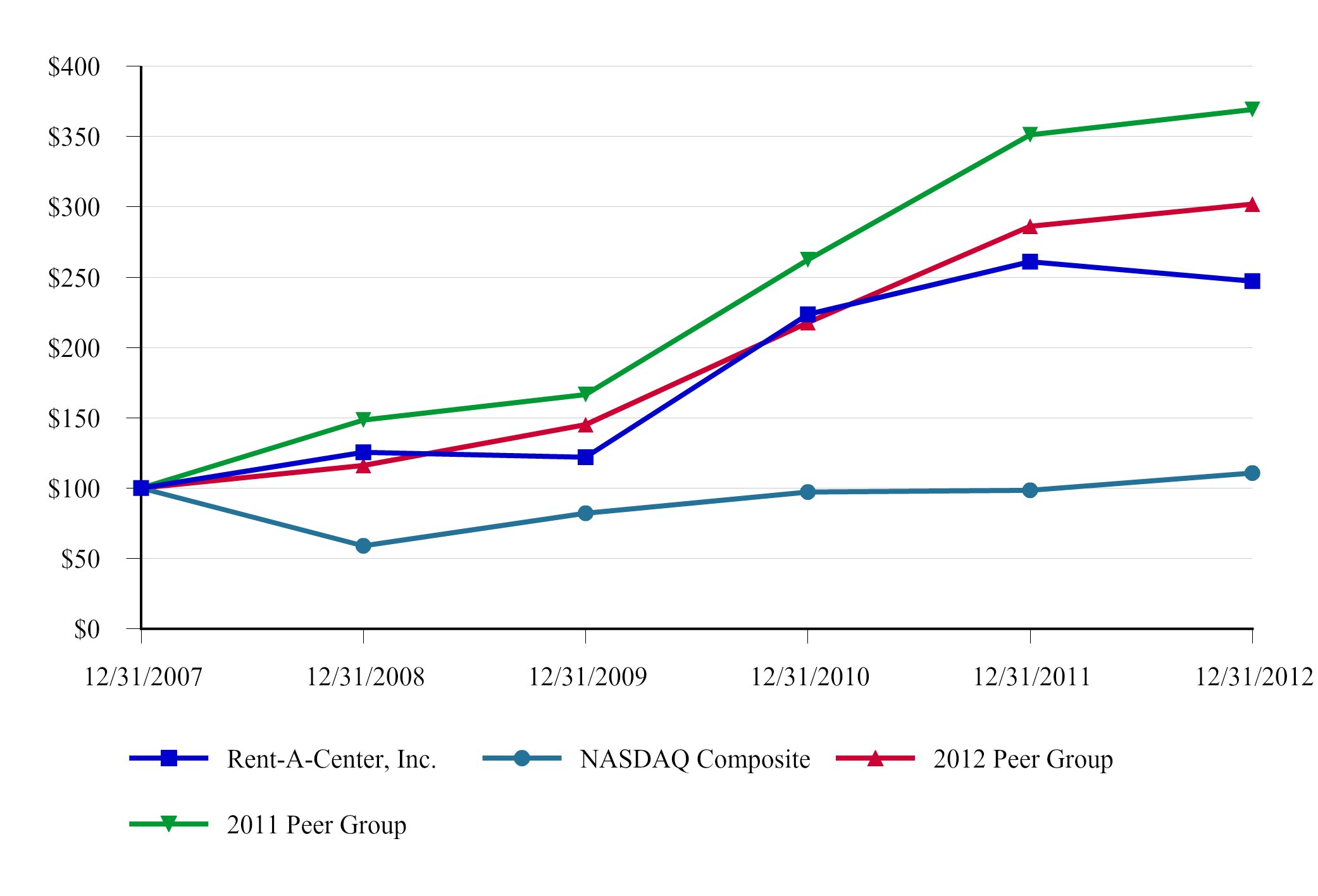 Fourth Amended and Restated Credit Agreement, dated as of May 28, 2003, as amended and restated as of July 14, 2011, among Rent-A-Center, Inc., the several banks and other financial institutions or entities from time to time parties thereto, Bank of America, N.A., Compass Bank and Wells Fargo Bank, N.A., as syndication agents, and JPMorgan Chase Bank, N.A., as administrative agent (Incorporated herein by reference to Exhibit 10.1 to the registrant's Current Report on Form 8-K dated as of July 14, 2011.)