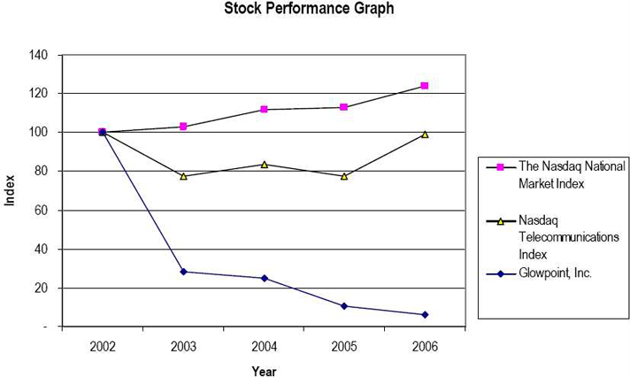 In March 2006, we implemented a corporate restructuring plan designed to reduce certain operating, sales and marketing and general and administrative costs. The costs of this restructuring, approximately $1,200,000, consisting of severance payments, acceleration of vesting of stock options and benefit reimbursements, were recorded in the first quarter of 2006 and will be paid through April 2007. As part of the restructuring initiative, we implemented management changes, including the departure of twenty-one employees and the promotion of Michael Brandofino to Chief Operating Officer. David Trachtenberg, President and Chief Executive Officer since October 2003, and Gerard Dorsey, Executive Vice President and Chief Financial Officer since December 2004 had left Glowpoint. In connection with their separation, Messrs. Trachtenberg and Dorsey were paid severance based upon their employment agreements of approximately $500,000 and $155,000, respectively, over the following year and receive other benefits (e.g., accelerated vesting of restricted stock or options) valued at approximately $180,000 and $7,000, respectively. The amount paid to them is a portion of the $1,200,000 of restructuring costs recorded in 2006. In April 2006, Mr. Brandofino was appointed President and Chief Executive Officer and a member of the Board of Directors, Edwin Heinen was appointed Chief Financial Officer, and Joseph Laezza was appointed Chief Operating Officer. The following is a summary of our March 2006 restructuring activity during the year ended December 31, 2006 (in thousands):