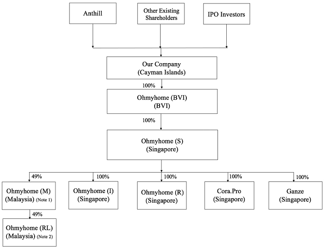 Ohmyhome (S), Ohmyhome Renovation Pte Ltd, Ohmyhome Insurance Pte Ltd, Cora Pro Pte Ltd and Ganze Pte. Ltd. are incorporated in Singapore and are subject to Singapore Corporate Tax on the taxable income as reported in its statutory financial statements adjusted in accordance with relevant Singapore tax laws. The applicable tax rate is 17% in Singapore, with 75% of the first S$10,000 taxable income and 50% of the next S$190,000 taxable income exempted from income tax.