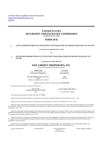 Latest form 10-K annual reports for One Liberty Properties CIK: 0000712770