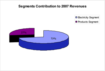 The charts below show the relative contributions of the Electricity Segment and the Products Segment to our consolidated revenues and the geographical breakdown of our segment revenues for our fiscal year ended December 31, 2007. Additional information concerning our segment operations, including year-to-year comparisons of revenues, the geographical breakdown of revenues, cost of revenues, results of operations, and trends and uncertainties is provided below in Item 7 — ‘‘Management’s Discussion and Analysis of Financial Condition and Results of Operations’’ and Item 8 — ‘‘Financial Statements and Supplementary Data’’.