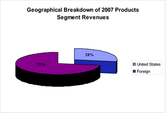 The following chart sets forth the geographical breakdown of the revenues attributable to our Products Segment for the year ended December 31, 2007: