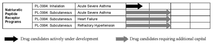 inhaled formulation of PL-3994. We have ceased research and development efforts on new product candidates. However, we do not intend to expend substantial amounts on PL-3994, new peptide drug candidates for sexual dysfunction or other programs unless we obtain additional capital, through collaborative arrangements or other sources, to support such activities.