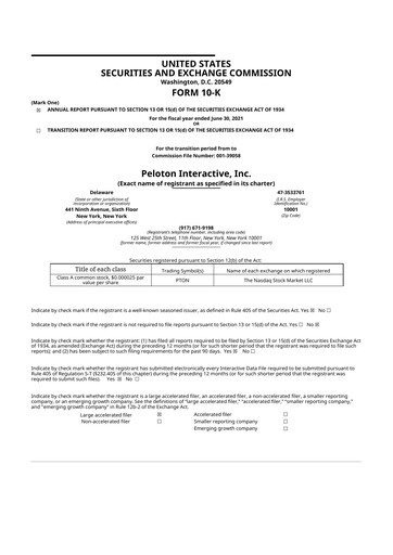 Latest form 10-K annual reports for Peloton CIK: 0001639825