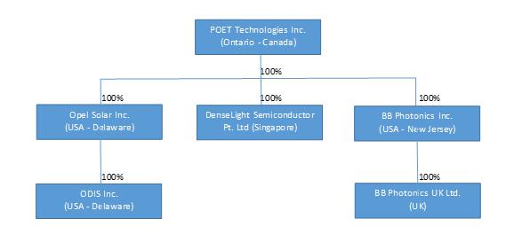 POET Technologies is a developer and manufacturer of optical light source products for the sensing and data communications markets. Integration of optics and electronics is fundamental to increasing functional scaling and lowering the cost of current photonic solutions. POET believes that its approach to both hybrid and monolithic integration of devices, utilizing a novel dielectric platform and proven advanced wafer-level packaging techniques enables substantial improvements in device cost, efficiency and performance. Optical engines based on this integrated approach have applications ranging from data centers to consumer products.