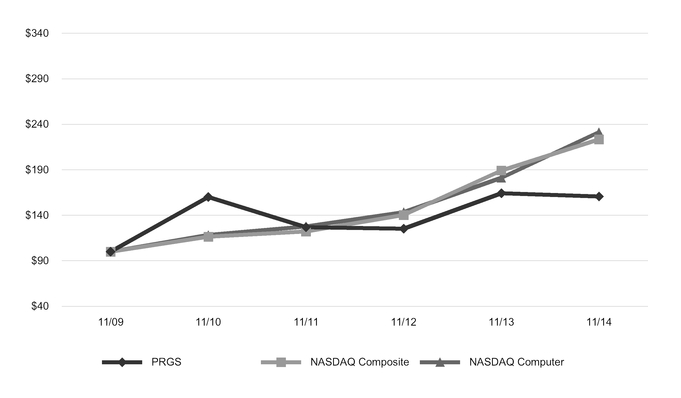 The following materials from Progress Software Corporation’s Annual Report on Form 10-K for the year ended November 30, 2013, formatted in XBRL (eXtensible Business Reporting Language): (i) Consolidated Balance Sheets as of November 30, 2013 and 2012, (ii) Consolidated Statements of Income for the years ended November 30, 2013, 2012 and 2011, (iii) Consolidated Statements of Comprehensive Income for the years ended November 30, 2013, 2012 and 2011, (iv) Consolidated Statements of Shareholders’ Equity for the years ended November 30, 2013, 2012 and 2011, and (v) Consolidated Statements of Cash Flows for the years ended November 30, 2013, 2012 and 2011.