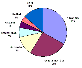 Our Instrumentation segment principally offers equipment and consumables for materials analysis, fluid properties testing and industrial leak testing. These products and solutions are provided through three U.S.-based and two European-based operating units. For 2004, this segment had net sales of $213.7 million, representing 22.0% of our total net sales.