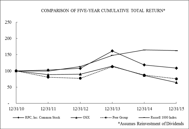 The fluctuations in domestic drilling activity since the most recent peak in the third quarter of 2014 are consistent with global supply of and demand for oil, the domestic supply of and demand for natural gas, U.S. domestic storage levels of oil and natural gas, fluctuations in the value of the U.S. dollar on world currency markets, and projected near-term economic growth. During 2015 the average price of natural gas decreased by approximately 39 percent compared to the prior year, but during the first quarter of 2016 stabilized at a price approximately equal to the average price in the fourth quarter of 2015. The average price of oil decreased by approximately 48 percent during 2015 compared to 2014. Early in the first quarter of 2016, the price of oil decreased by approximately 26 percent compared to the fourth quarter of 2015. RPC believes that the decrease in the price of oil during this period has been caused by the actions of the OPEC cartel, increased supply from the domestic U.S. market, weak global demand, the strength of the U.S. dollar on global currency markets and high storage levels of oil. The precipitous decline in the price of oil that has taken place since the third quarter of 2014 has caused a significant decrease in oil-directed drilling activity. During this period the U.S. domestic oil-directed drilling rig count has fallen by approximately 70 percent. In addition to oil and natural gas, the price of natural gas liquids has become a determinant of our customers’ activity levels, since it is produced in many of the shale resource plays which also produce oil, and production of various natural gas liquids has increased to a level comparable to that of natural gas. During 2015 the average price of natural gas liquids decreased by approximately 56 percent compared to 2014, and early in the first quarter of 2016 had declined by approximately 26 percent compared to the average price in 2015. The declines in the prices of oil, natural gas, and natural gas liquids during 2015 and the first quarter of 2016 to date carry significant negative implications for RPC’s customer activity levels over the near term.