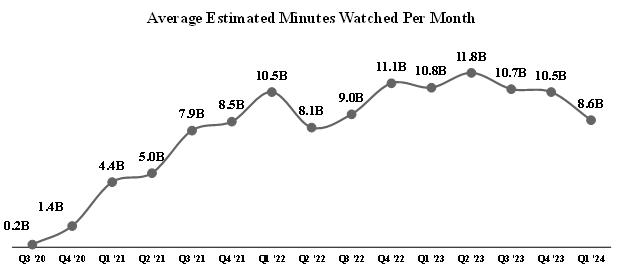Estimated MWPM was 8.6 billion on average in the first quarter of 2024, a decrease of 18% from the fourth quarter of 2023. We believe that the decline from the fourth quarter of 2023 was due to the majority of our bandwidth consumption moving from third-party service providers’ content delivery networks (“CDNs”) to our own proprietary CDN. Based on preliminary testing, our own CDN indicates less bandwidth consumption than one of our service providers’ CDNs for comparable user activity. Because we calculate estimated MWPM by converting bandwidth consumption into minutes watched, consumption measured through our own CDN yields a lower estimated MWPM than when measured through that service provider’s CDN.