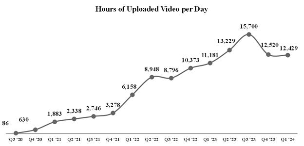 We use the amount of hours of uploaded video per day as a measure of content creation to help us understand the volume of content being created and uploaded to us on a daily basis. Hours of uploaded video per day were 12,429 on average in the first quarter of 2024, representing an increase of 11% from the first quarter of 2023 and a decrease of 1% from the fourth quarter of 2023. As previously disclosed, we believe hours of uploaded video per day have been depressed by YouTube’s decision in the fourth quarter of 2023 to disable the ability of its users to utilize our tool that automatically imports videos from creators’ YouTube channels to their Rumble channels, commonly known as the “YouTube sync” tool. We provided additional information about this issue in a current report on Form 8-K, filed with the SEC on January 16, 2024.