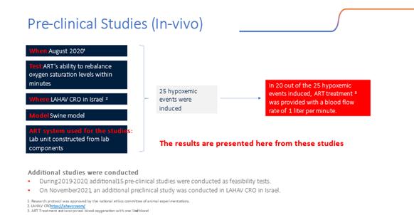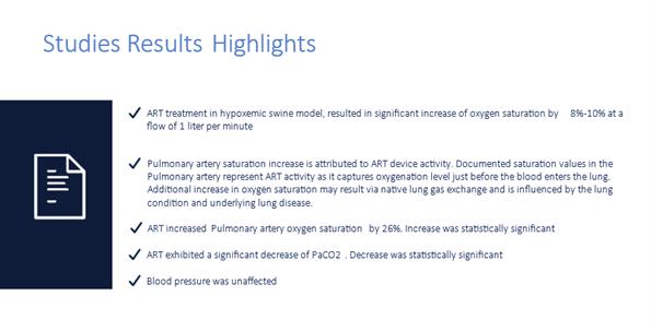 We are a specialty medical device company engaged in the research, development, manufacturing related activities, and go to market activities of proprietary respiratory support technology. We are developing the ART device (previously known as the ART500), described herein as the “ART,” “ART device” or “ART system,” a cost effective early extracorporeal respiratory support system intended to function as an external “artificial lung” for deteriorating respiratory patients. The ART device is designed to utilize a hemo-protective flow approach aimed to rebalance saturation levels while patients are awake and breathing, potentially minimizing the patient’s need for mechanical ventilation, or MV, which is the standard of care today for the treatment of respiratory failure. Although it may be considered lifesaving, MV is associated with increased costs of care, extended lengths of stay in the hospital, frequent incidence of infections, ventilator dependence and mortality. Using our state-of-the-art respiratory support technology, our goal is to set a new standard of care and to provide patients with respiratory insufficiency/failure an opportunity to remain awake, maintain spontaneous breathing and avoid the various risks associated with the use of MV. As part of our strategy to reach this goal, and in parallel to pursuing regulatory approvals, we are actively working to establish collaborations with strategic partners and globally ranked health centers, to provide endorsement and clinical adoption for regional deployments of our respiratory support technology. We plan to target intensive care units, or ICUs, general medical units, emergency medical services and small urban and rural hospitals.