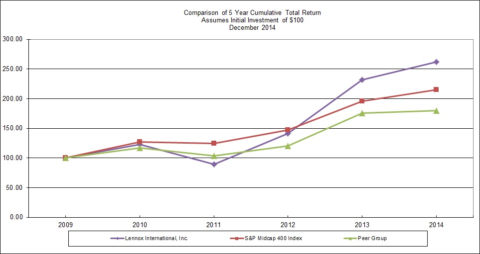 Amendment to the Amended and Restated Receivables Purchase Agreement, effective as of December 15, 2014, among LPAC Corp., as the Seller, Lennox Industries Inc., as the Master Servicer, with Victory Receivables Corporation, as Purchaser, The Bank of Tokyo-Mitsubishi UFJ, Ltd., New York Branch, as Administrative Agent, a Liquidity Bank and the BTMU purchaser agent, and PNC Bank, National Association, as a Liquidity Bank and the PNC purchaser agent (filed as Exhibit 10.1 to LII's Current Report on Form 8-K filed on December 15, 2014 and incorporated herein by reference).