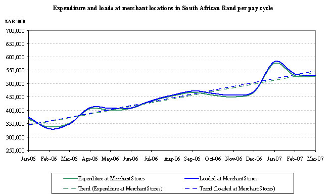 Net cash inflows from operating activities for the three months ended March 31, 2007, was $4.1 million (ZAR 29.6 million) compared to $9.0 million (ZAR 55.5 million) for the three months ended March 31, 2006. The decrease in net cash inflows is largely due to the re-imbursement by the Eastern Cape provincial government of March 2007 pay cycle grants paid in early April 2007. In addition, the April 2007 pay cycle was opened at merchants in the last four days of March 2007 and merchants are traditionally reimbursed within 48 hours of distributing the grant to the beneficiary. The provincial governments typically repay us between seven and 14 days of distributing the grant.