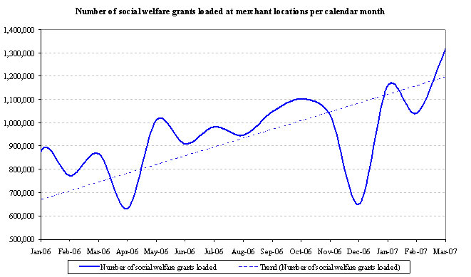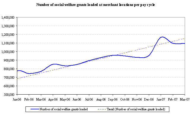 The pre-funded social welfare grants receivable represents the amounts due from provincial governments, as the Company pre-funds social welfare grant payments on behalf of the government in these provinces. The pre-funded amounts are typically reimbursed to the Company within two weeks after the disbursement of the grants. The grant payment service normally commences during the week before the start of a calendar month at government pay points and merchant locations. For the three and nine months ended March 31, 2007, the April payment service commenced during the last three days of March 2007 and was offered at government pay points and at merchant locations.