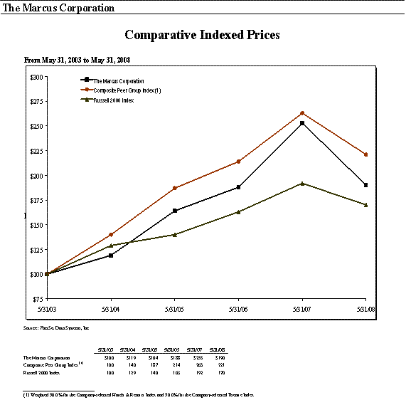 The Companys Board of Directors has authorized the issuance of up to 750,000 shares of Common Stock for The Marcus Corporation Dividend Reinvestment and Associate Stock Purchase Plan. At May 29, 2008, there were 573,706 shares available under this authorization.