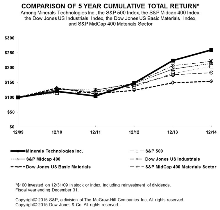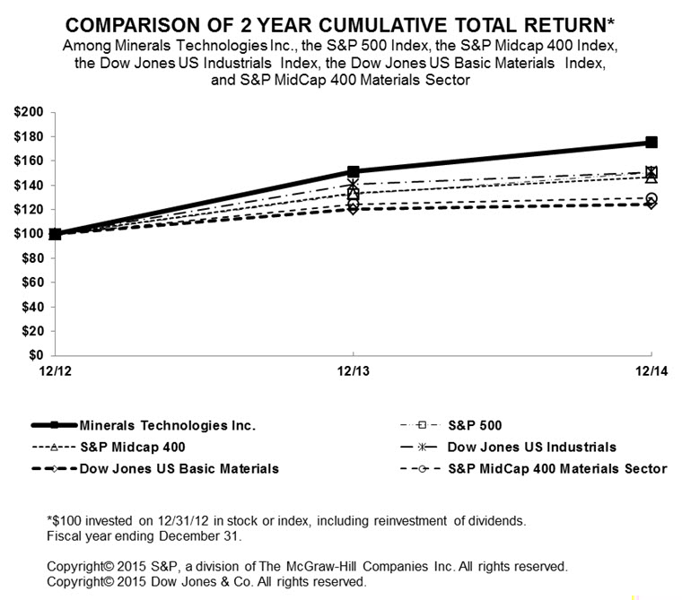 We have audited the accompanying consolidated balance sheets of Minerals Technologies Inc. and subsidiary companies as of December 31, 2014 and 2013, and the related consolidated statements of income, comprehensive income, shareholders’ equity, and cash flows for each of the years in the threeyear period ended December 31, 2014. In connection with our audits of the consolidated financial statements, we also have audited the related financial statement schedule. These consolidated financial statements and financial statement schedule are the responsibility of the Company’s management. Our responsibility is to express an opinion on these consolidated financial statements and financial statement schedule based on our audits.