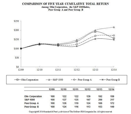 Olin Corporation 2014 Long Term Incentive Plan effective January 24, 2014—Exhibit 10.1 to Olin’s Form 8-K filed April 25, 2014.*