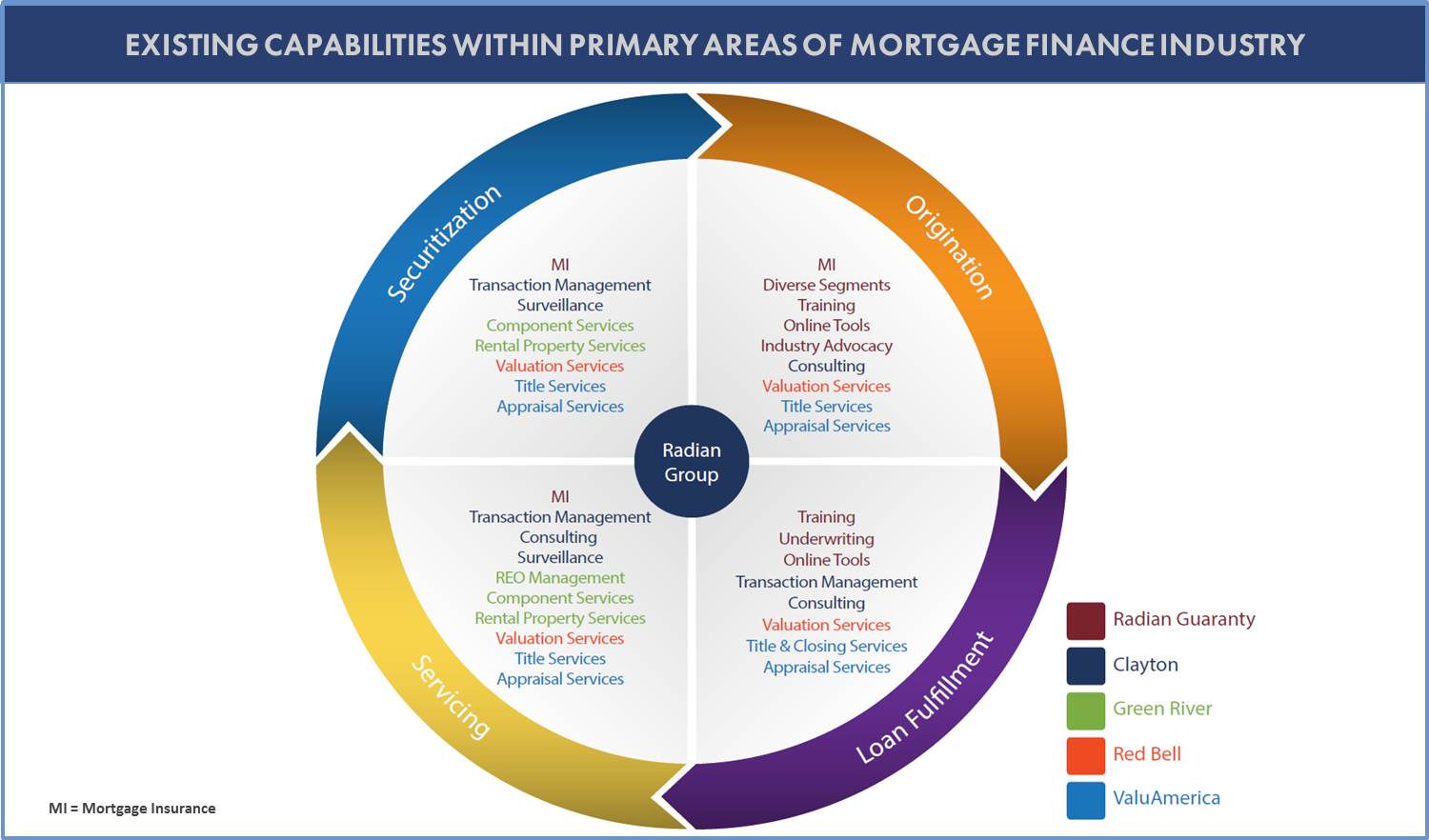 Confidential Settlement Agreement and Release, dated as of September 16, 2014, by and among Radian Guaranty Inc., Countrywide Home Loans, Inc., and Bank of America, N.A., as a successor to BofA Home Loans Servicing f/k/a Countrywide Home Loans Servicing LP on its own behalf and as successor in interest by de jure merger to Countrywide Bank FSB, formerly Treasury Bank (incorporated by reference to Exhibit 10.1 to the Registrant’s Current Report on Form 8-K (file no. 1-11356) dated September 16, 2014, and filed on September 19, 2014)