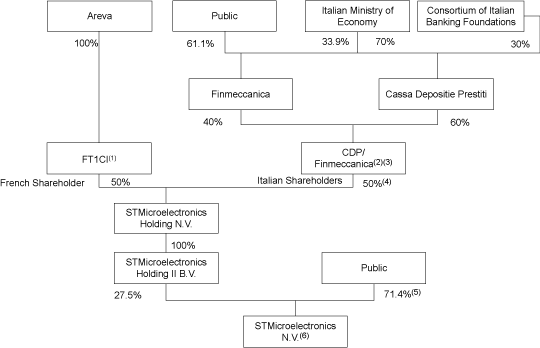 For the years ended December 31, 2007, December 31, 2006 and 2005, the related party transactions were primarily with significant shareholders of the Company, or their subsidiaries and companies in which management of the Company perform similar policymaking functions. These include, but are not limited to: Commissariat à l’Energie Atomique (LETI) Areva, France Telecom, Equant, Orange, Finmeccanica, Cassa Depositi e Prestiti and Thomson. For 2007, the related party transactions also include transactions with Flextronics, Oracle and KLA-Tenkor. Additionally the Company incurred in 2007 and 2006 significant amounts from Hynix Semiconductor Inc., with which the Company has a significant equity investment, Hynix ST joint venture, described in detail in note 4. In 2007 and 2006, Hynix Semiconductor Inc. increased its business transactions with the Company in order to supply products on behalf of the joint venture, which was not ready to fully produce and supply the volumes of specific products as requested by the Company. The amount of purchases and other expenses from Hynix Semiconductor Inc. was $161 million in 2007 and $161 million in 2006. The amount of sales and other services made in 2007 was $2 million. The Company had a payable amount of $18 million as at December 31, 2007 and $13 million as at December 31, 2006.