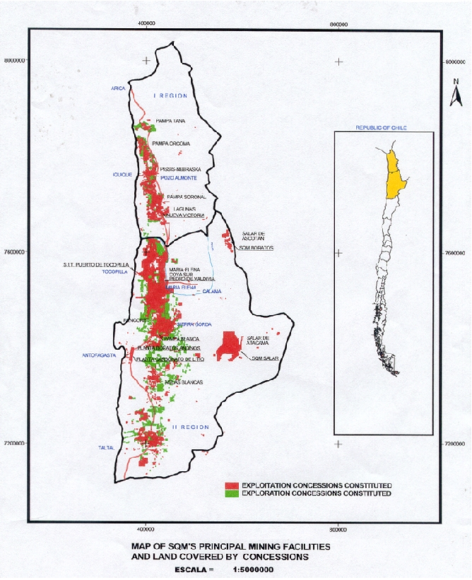 We conduct our mining (including brine extraction) operations under exploitation and exploration concessions granted pursuant to judicial proceedings in accordance with provisions of the Chilean Constitution and the Constitutional Mining Law and related statutes. Exploitation concessions, which account for the majority of the mining rights held by SQM, including those applicable to all of our properties which are currently being mined, essentially grant a perpetual right to conduct mining operations in the areas covered by the concessions, provided that we pay annual concession fees. Exploration concessions permit us to explore for mineral resources on the land covered thereby for a specified period of time, and to subsequently request a corresponding exploitation concession. We also hold water rights obtained from the Chilean Water Authority for a supply of water from rivers and wells near our production facilities which is sufficient to meet current and anticipated operational requirements. We operate port facilities at Tocopilla, Chile, for the shipment of our products and delivery of certain raw materials, pursuant to concessions granted by Chilean regulatory authorities. These concessions are renewable provided that we use such facilities as authorized and pay annual concession fees.