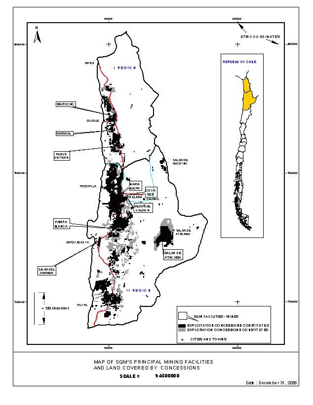 The Republic of Chile is governed by a democratic government, organized in twelve regions plus the Metropolitan Region (surrounding and including Santiago, the capital of Chile). Our production operations are concentrated in northern Chile, specifically in the First Region, also named Tarapacá Region, and in the Second Region, also named Antofagasta Region.