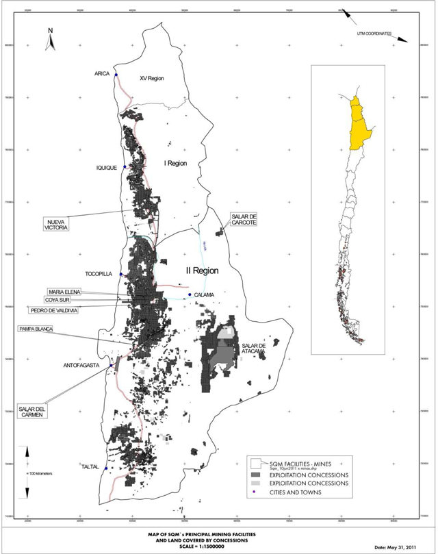 SQM Salar S.A., a consolidated subsidiary of the Company, entered into a contract with a government agency (CORFO) for the rental of land for the purpose of exploration and exploitation of certain minerals. Rental payments (royalties) are stated in US dollars and are determined based on actual mineral sales through 2030 in accordance with rates specified in the agreement. Based on the agreement the Company paid ThUS$ 18,717, ThUS$ 17,747 and ThUS 17,712 in 2010, 2009 and 2008 respectively, including the minimum annual rental, which was ThUS$ 7,567, ThUS$ 11,738 and ThUS$ 3,757 for 2010, 2009 and 2008, respectively. Future estimated minimum annual rentals are as follows: