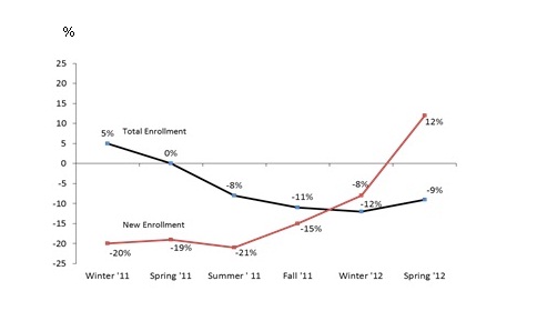 Average enrollment decreased 11% to 50,664 students for the six months ended June 30, 2012 compared to 56,791 students for the same period in 2011.
