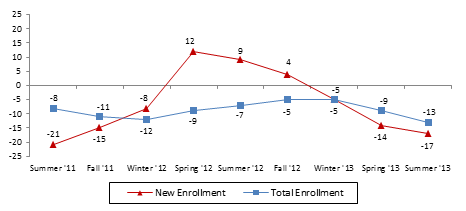 We collected the majority of our fiscal year 2012 total consolidated net revenue from receipt of Title IV financial aid program funds, principally from federal student loans under the Federal Direct Loan Program (FDLP). Changes in the availability of these funds or a reduction in the amount of funds disbursed may have a material adverse effect on our enrollment, financial condition, results of operations and cash flows. Congress eliminated further federal direct subsidized loans for graduate and professional students as of July 1, 2012. On August 9, 2013, Congress passed legislation that ties interest rates on Title IV loans to the rate paid on US Treasury bonds. Interest rates are set every July 1 for loans taken out from July 1