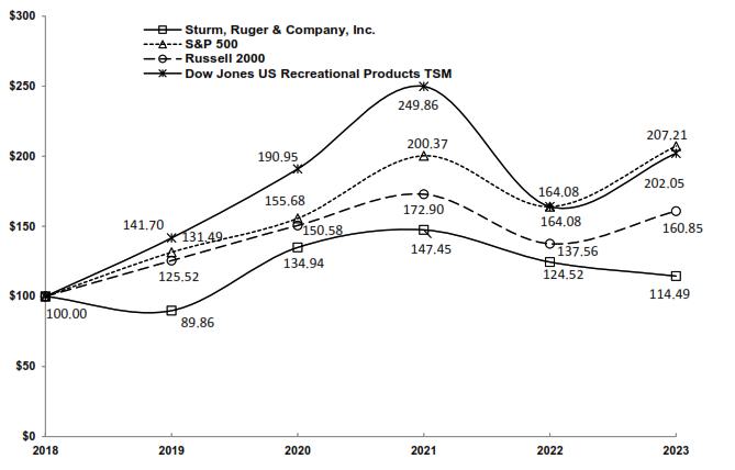 YesNoYesYesfalseFY000009502900000950292023-01-012023-12-3100000950292023-06-3000000950292024-02-1500000950292023-12-3100000950292022-12-310000095029us-gaap:NonvotingCommonStockMember2023-12-310000095029us-gaap:NonvotingCommonStockMember2022-12-310000095029us-gaap:CommonStockMember2023-12-310000095029us-gaap:CommonStockMember2022-12-310000095029rgr:FirearmsMember2023-01-012023-12-310000095029rgr:FirearmsMember2022-01-012022-12-310000095029rgr:FirearmsMember2021-01-012021-12-310000095029rgr:UnaffiliatedCastingsMember2023-01-012023-12-310000095029rgr:UnaffiliatedCastingsMember2022-01-012022-12-310000095029rgr:UnaffiliatedCastingsMember2021-01-012021-12-3100000950292022-01-012022-12-3100000950292021-01-012021-12-310000095029us-gaap:CommonStockMember2020-12-310000095029us-gaap:AdditionalPaidInCapitalMember2020-12-310000095029us-gaap:RetainedEarningsMember2020-12-310000095029us-gaap:TreasuryStockCommonMember2020-12-3100000950292020-12-310000095029us-gaap:RetainedEarningsMember2021-01-012021-12-310000095029us-gaap:AdditionalPaidInCapitalMember2021-01-012021-12-310000095029us-gaap:CommonStockMember2021-01-012021-12-310000095029us-gaap:CommonStockMember2021-12-310000095029us-gaap:AdditionalPaidInCapitalMember2021-12-310000095029us-gaap:RetainedEarningsMember2021-12-310000095029us-gaap:TreasuryStockCommonMember2021-12-3100000950292021-12-310000095029us-gaap:RetainedEarningsMember2022-01-012022-12-310000095029us-gaap:AdditionalPaidInCapitalMember2022-01-012022-12-310000095029us-gaap:CommonStockMember2022-01-012022-12-310000095029us-gaap:TreasuryStockCommonMember2022-01-012022-12-310000095029us-gaap:CommonStockMember2022-12-310000095029us-gaap:AdditionalPaidInCapitalMember2022-12-310000095029us-gaap:RetainedEarningsMember2022-12-310000095029us-gaap:TreasuryStockCommonMember2022-12-310000095029us-gaap:RetainedEarningsMember2023-01-012023-12-310000095029us-gaap:AdditionalPaidInCapitalMember2023-01-012023-12-310000095029us-gaap:CommonStockMember2023-01-012023-12-310000095029us-gaap:TreasuryStockCommonMember2023-01-012023-12-310000095029us-gaap:CommonStockMember2023-12-310000095029us-gaap:AdditionalPaidInCapitalMember2023-12-310000095029us-gaap:RetainedEarningsMember2023-12-310000095029us-gaap:TreasuryStockCommonMember2023-12-310000095029us-gaap:SalesMemberus-gaap:CustomerConcentrationRiskMemberrgr:FirearmsMember2023-01-012023-12-310000095029us-gaap:SalesMemberus-gaap:CustomerConcentrationRiskMemberrgr:ExportSalesMember2023-01-012023-12-310000095029us-gaap:SalesMemberus-gaap:CustomerConcentrationRiskMemberrgr:CastingsSalesMember2023-01-012023-12-310000095029us-gaap:BuildingMember2023-12-310000095029us-gaap:MachineryAndEquipmentMember2023-12-310000095029us-gaap:ToolsDiesAndMoldsMember2023-12-310000095029us-gaap:OtherDebtSecuritiesMember2023-01-012023-12-3100000950292021-01-012021-03-310000095029rgr:CustomerOneMemberus-gaap:AccountsReceivableMemberus-gaap:CustomerConcentrationRiskMember2023-01-012023-12-310000095029rgr:CustomerTwoMemberus-gaap:AccountsReceivableMemberus-gaap:CustomerConcentrationRiskMember2023-01-012023-12-310000095029rgr:CustomerThreeMemberus-gaap:AccountsReceivableMemberus-gaap:CustomerConcentrationRiskMember2023-01-012023-12-310000095029rgr:CustomerOneMemberus-gaap:AccountsReceivableMemberus-gaap:CustomerConcentrationRiskMember2022-01-012022-12-310000095029rgr:CustomerTwoMemberus-gaap:AccountsReceivableMemberus-gaap:CustomerConcentrationRiskMember2022-01-012022-12-310000095029rgr:CustomerThreeMemberus-gaap:AccountsReceivableMemberus-gaap:CustomerConcentrationRiskMember2022-01-012022-12-310000095029us-gaap:LandAndLandImprovementsMember2023-12-310000095029us-gaap:LandAndLandImprovementsMember2022-12-310000095029us-gaap:BuildingAndBuildingImprovementsMember2023-12-310000095029us-gaap:BuildingAndBuildingImprovementsMember2022-12-310000095029us-gaap:MachineryAndEquipmentMember2022-12-310000095029us-gaap:ToolsDiesAndMoldsMember2022-12-310000095029rgr:TradeNameMember2023-12-310000095029us-gaap:CustomerRelationshipsMember2023-12-310000095029us-gaap:OtherAssetsMember2023-12-310000095029us-gaap:OtherAssetsMember2022-12-310000095029rgr:TradeAccountsPayableAndAccruedExpensesMember2023-12-310000095029rgr:TradeAccountsPayableAndAccruedExpensesMember2022-12-310000095029rgr:LeaseLiabilitiesMember2023-12-310000095029rgr:LeaseLiabilitiesMember2022-12-310000095029rgr:OperatingLeaseMember2023-12-3100000950292022-11-3000000950292023-01-050000095029us-gaap:LineOfCreditMember2021-12-310000095029us-gaap:LineOfCreditMember2023-12-3100000950292022-01-012022-01-070000095029us-gaap:LineOfCreditMember2023-01-012023-12-310000095029rgr:JulyThreeToJulyThirtyMemberrgr:ThirdQuarter2022Member2022-09-300000095029rgr:JulyThreeToJulyThirtyMemberrgr:ThirdQuarter2022Member2022-07-012022-09-300000095029rgr:JulyThirtyoneToAugustTwentySevenMemberrgr:ThirdQuarter2022Member2022-09-300000095029rgr:JulyThirtyoneToAugustTwentySevenMemberrgr:ThirdQuarter2022Member2022-07-012022-09-300000095029rgr:AugustTwentyEightToOctoberOneMemberrgr:ThirdQuarter2022Member2022-09-300000095029rgr:AugustTwentyEightToOctoberOneMemberrgr:ThirdQuarter2022Member2022-07-012022-09-300000095029rgr:OctoberTwoToOctoberTwentyNineMemberrgr:FourthQuarter2022Member2022-12-310000095029rgr:OctoberTwoToOctoberTwentyNineMemberrgr:FourthQuarter2022Member2022-10-012022-12-310000095029rgr:OctoberThirtyToNovemberTwentySevenMemberrgr:FourthQuarter2022Member2022-12-310000095029rgr:OctoberThirtyToNovemberTwentySevenMemberrgr:FourthQuarter2022Member2022-10-012022-12-310000095029rgr:NovemberTwentySevenToDecemberThirtyOneMemberrgr:FourthQuarter2022Member2022-12-310000095029rgr:NovemberTwentySevenToDecemberThirtyOneMemberrgr:FourthQuarter2022Member2022-10-012022-12-310000095029rgr:OctoberOneToOctoberTwentyEightMemberrgr:FourthQuarter2023Member2023-12-310000095029rgr:OctoberOneToOctoberTwentyEightMemberrgr:FourthQuarter2023Member2023-10-012023-12-310000095029rgr:October29ToNovember25Memberrgr:FourthQuarter2023Member2023-12-310000095029rgr:October29ToNovember25Memberrgr:FourthQuar