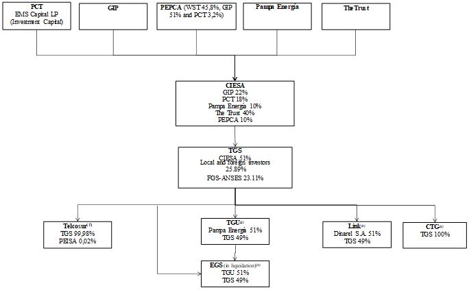 In September 2003, EGS, a company registered in Argentina, was incorporated. The ownership is distributed between TGS (49%) and TGU (51%). EGS operates its own pipeline, which connects TGS’s main pipeline system in the Province of Santa Cruz with a delivery point on the border with Chile.