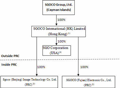 (1)The registered capital of SGOCO (Fujian) and Beijing SGOCO are $2,200,000 and $500,000, respectively. As of December 31, 2011, SGOCO International had paid capital of $449,960 and $nil to SGOCO (Fujian) and Beijing SGOCO, respectively. SGOCO International must pay the rest obligations within two years of the date of issuance of each subsidiary’s business license according to PRC registration capital management rules. As of March 19, 2012, SGOCO International had paid registered capital of $100,950 to Beijing SGOCO.