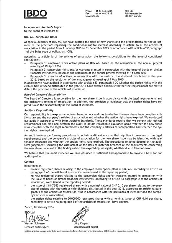 How to order reports: The annual and quarterly publications are available in PDF on the internet at www.ubs.com/investors  in the “Financial information” section. Printed copies can be ordered from the same website in the “Investor services” section, which can be accessed via the link on the left-hand side of the screen. Alternatively, they can be ordered by quoting the SAP number and the language preference, where applicable, from UBS AG, F4UK–AUL, P.O. Box, CH-8098 Zurich, Switzerland.