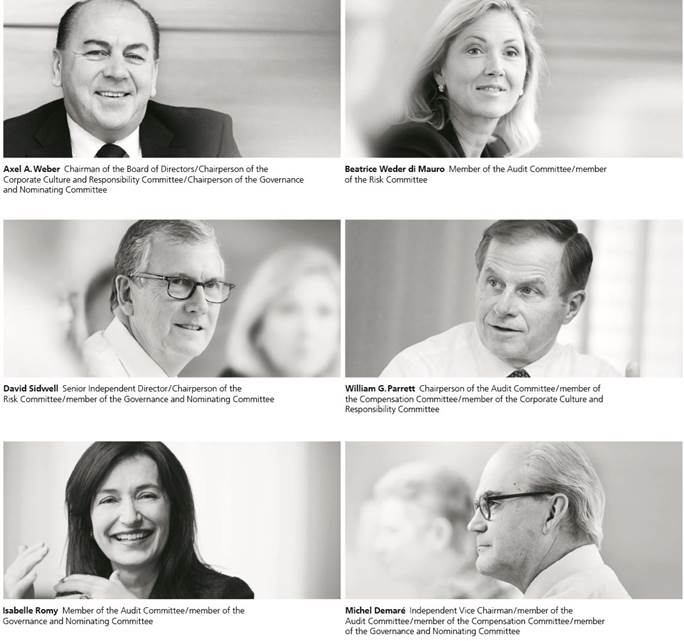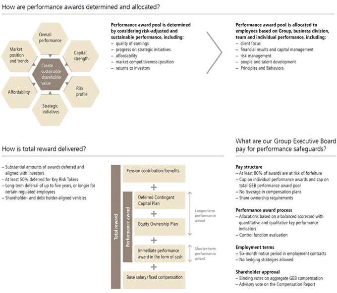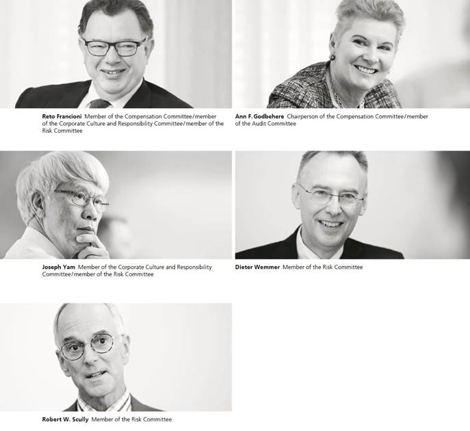 Annual publications: Annual Report (SAP-No. 80531): Published in both English and German, this single-volume report provides a description of our Group strategy and performance; the strategy and performance of the business divisions and Corporate Center; a description of risk, treasury, capital management, corporate governance, responsibility and senior management compensation, including compensation for the Board of Directors and the Group Executive Board members; and financial information, including the financial statements. Annual Review (SAP-No. 80530): The booklet contains key information on our strategy and financials. It is published in English, German, French and Italian. Compensation Report (SAP-No. 82307): The report discusses our compensation framework and provides information on compensation for the Board of Directors and the Group Executive Board members. It is published in English and German.