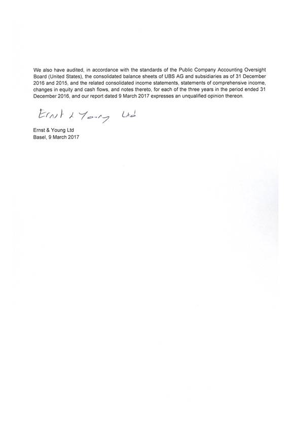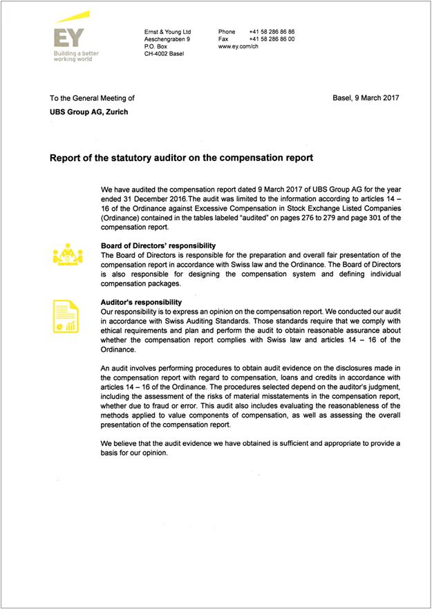 How to order reports: The annual and quarterly publications are available in PDF at www.ubs.com/investors in the “UBS Group AG and UBS AG financial information” section. Printed copies can be ordered from the same website in the “Investor services” section, which can be accessed via the link on the left-hand side of the screen. Alternatively, they can be ordered by quoting the SAP number and the language preference, where applicable, from UBS AG, F4UK-AUL, P.O. Box, CH-8098 Zurich, Switzerland.