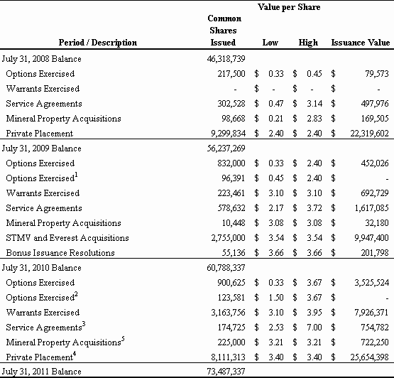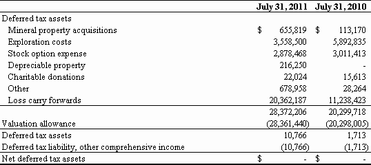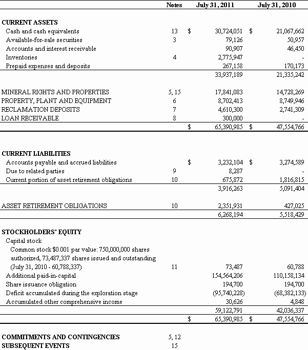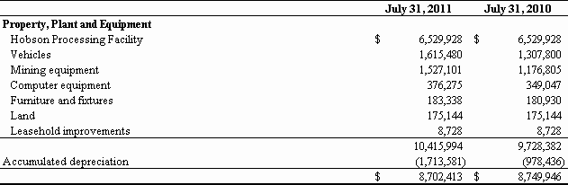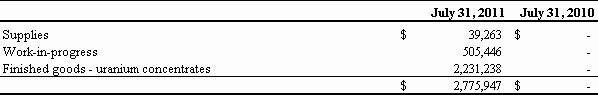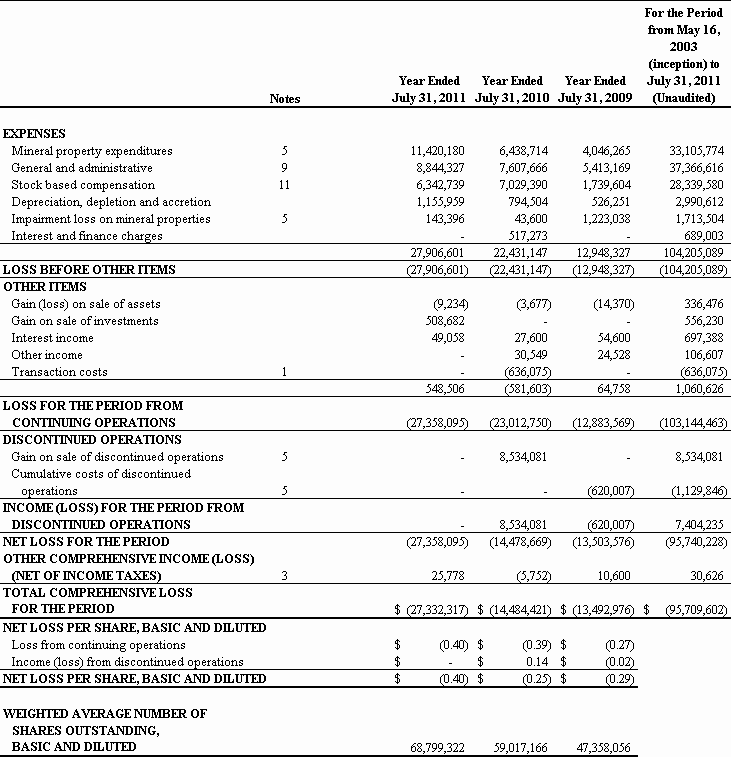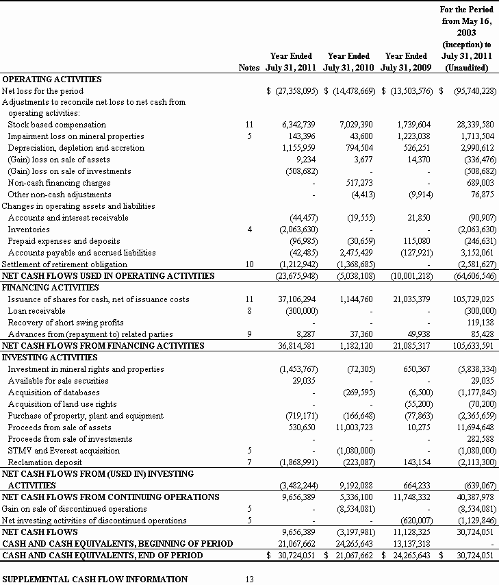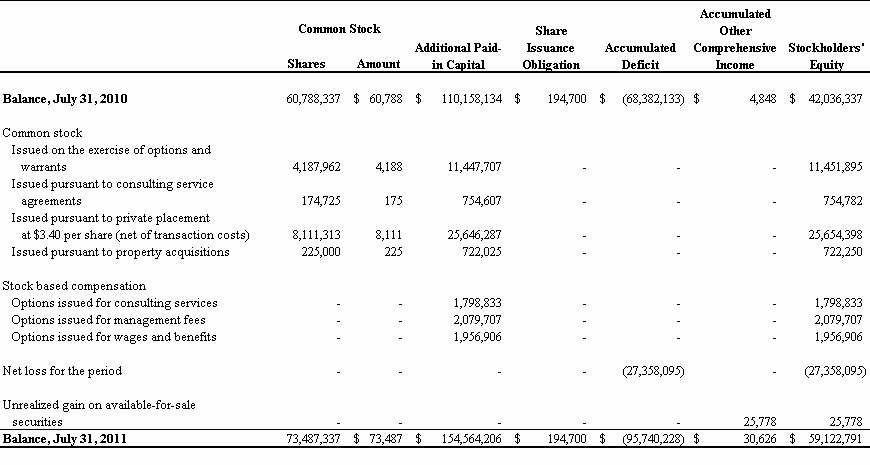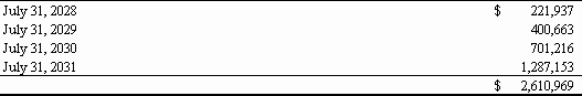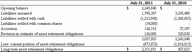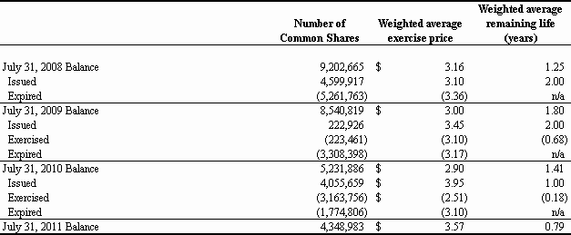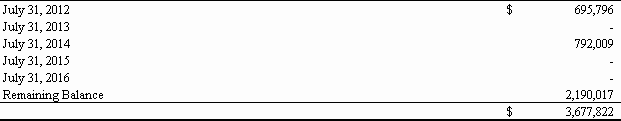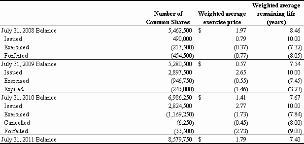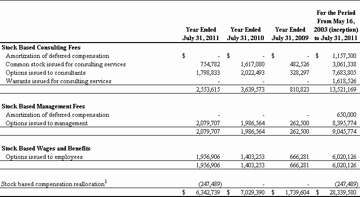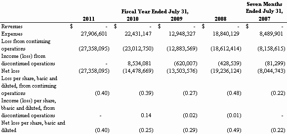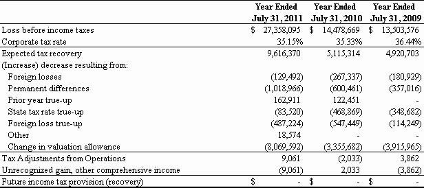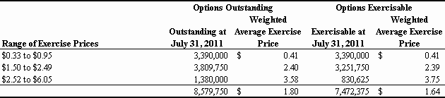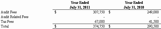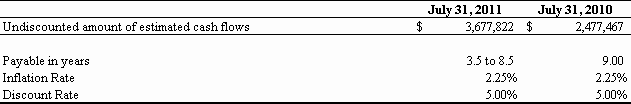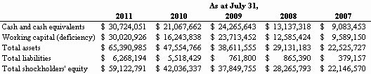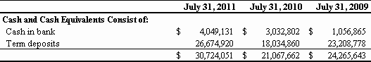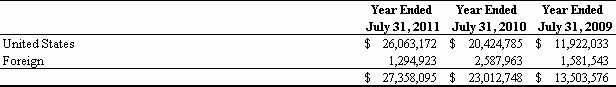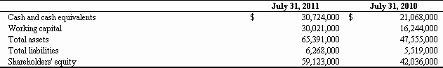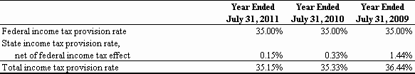 For the Fiscal Year Ended July 31, 2011