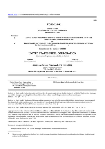 Latest form 10-K annual reports for U.S. Steel CIK: 0001163302