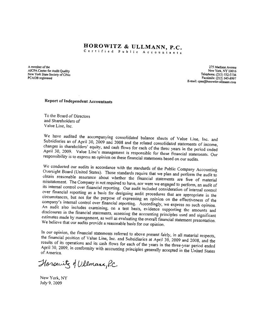 By letter dated June 15, 2005, the staff of the Northeast Regional Office of the Securities and Exchange Commission ("SEC") informed the Company that it was conducting an informal inquiry primarily regarding the execution of portfolio transactions by VLS for the Value Line Funds. The Company thereafter supplied numerous documents to the SEC in response to its requests and various employees and former employees of the Company provided testimony to the SEC. On May 8, 2008, the SEC issued a formal order of private investigation regarding whether the VLS brokerage charges and related expense reimbursements during periods prior to 2005 were excessive and whether adequate disclosure was made to the SEC and the boards of directors and shareholders of the Value Line Funds. Thereafter, certain senior officers of the Company asserted their constitutional privilege not to provide testimony. Management believes that the SEC has completed the fact finding phase of its investigation and the
