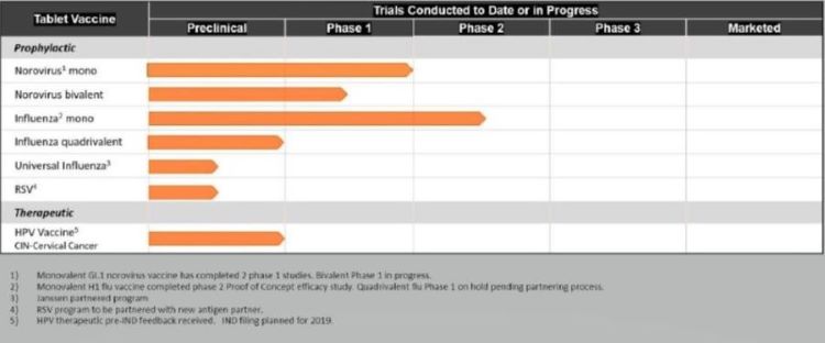 The issuance of a patent is not conclusive as to its inventorship, scope, validity or enforceability, and our owned and licensed patents may be challenged in the courts or patent offices in the United States and abroad. Such challenges may result in patent claims being narrowed, invalidated or held unenforceable, in whole or in part, which could limit our ability to stop others from using or commercializing similar or identical technology and tablet vaccines, or limit the duration of the patent protection of our technology and product candidates. Moreover, patents have a limited lifespan. In the United States and other countries, the natural expiration of a patent is generally 20 years after it is filed. Various extensions may be available, however, the life of a patent, and the protection it affords, is limited. Without patent protection for our current or future tablet vaccine candidates, we may be open to competition from generic versions of such product candidates. Given the amount of time required for the development, testing and regulatory review of new product candidates, patents protecting such candidates might expire before or shortly after such candidates are commercialized. As a result, our owned and licensed patent portfolio may not provide us with sufficient rights to exclude others from commercializing product candidates similar or identical to ours.