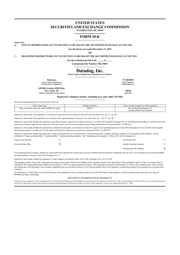Neueste 10-K Jahresberichte für Datadog CIK: 0001561550