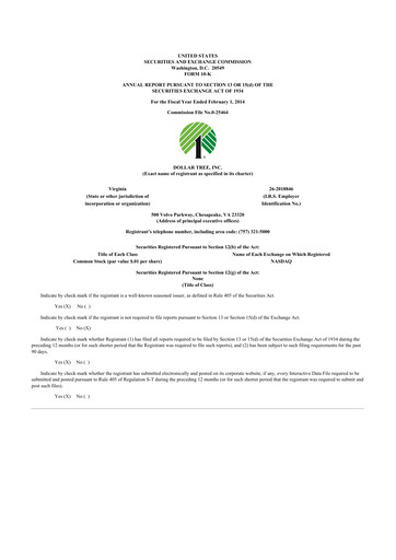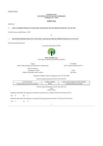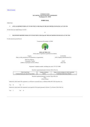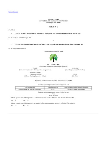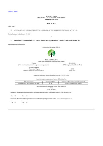 Derniers rapports annuels formulaire 10-K pour Dollar Tree CIK: 0000935703