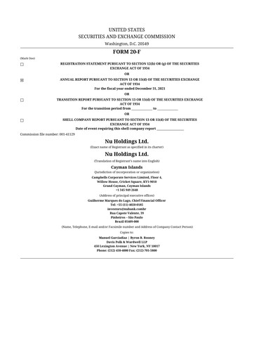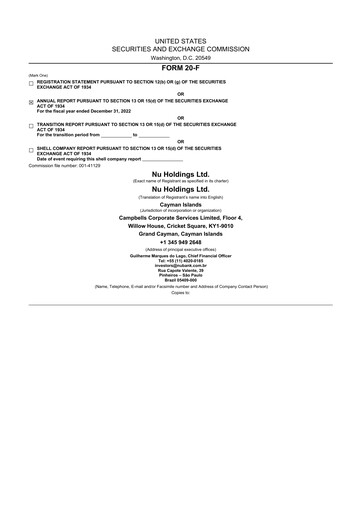Derniers rapports annuels formulaire 20-F pour Nu Holdings CIK: 0001691493Le formulaire 20-F est l'équivalent du 10-K pour les entreprises non américaines, en tant qu'entreprise étrangère Nu Holdings dépose uniquement des rapports 20-F