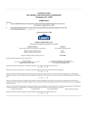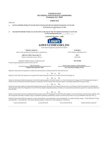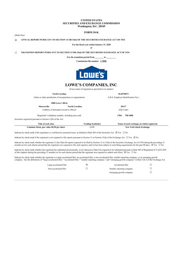 Latest form 10-K annual reports for Lowe's Companies CIK: 0000060667